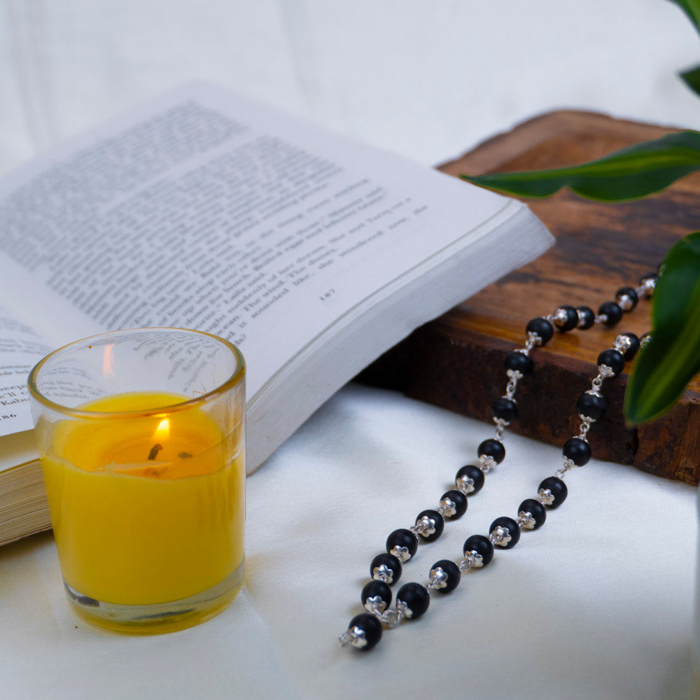Karungali Malai Silver Cap Plated Necklace is a sacred and elegant spiritual accessory crafted from original Karungali (Ebony) wood beads, adorned with high-quality silver-plated caps for a refined finish. Traditionally worn for protection and positive energy, this necklace combines spiritual power with stylish design. Ideal for daily wear, spiritual practices, or gifting purposes, this mala is known for its grounding properties and timeless appeal.